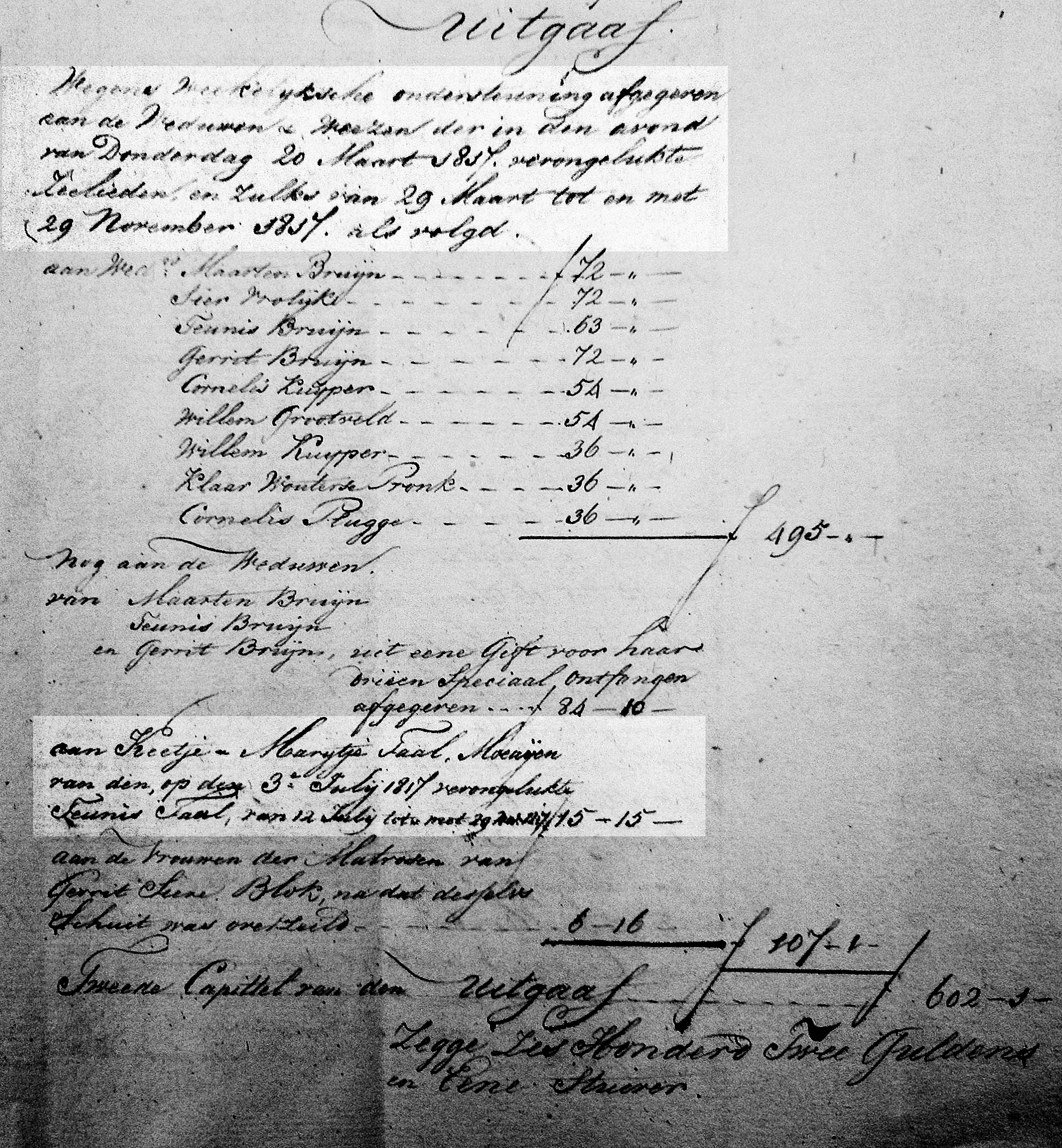 Aan de hand van de bedelings- en uitgavenlijst van de Commissie uit de Reederijen te Scheveningen besteed aan vissersweduwen- en wezen is op te maken dat op die datum Teunis Taal is verongelukt.
