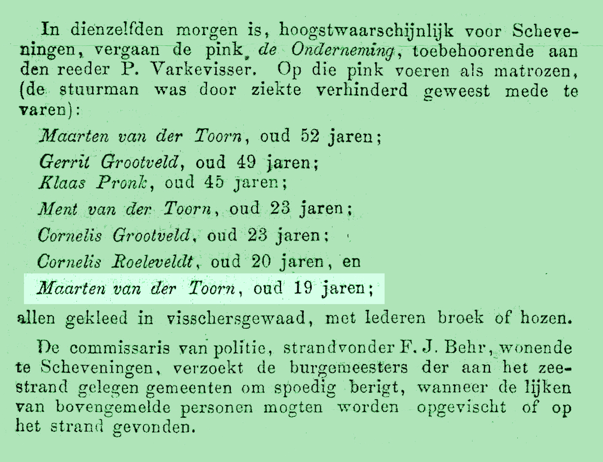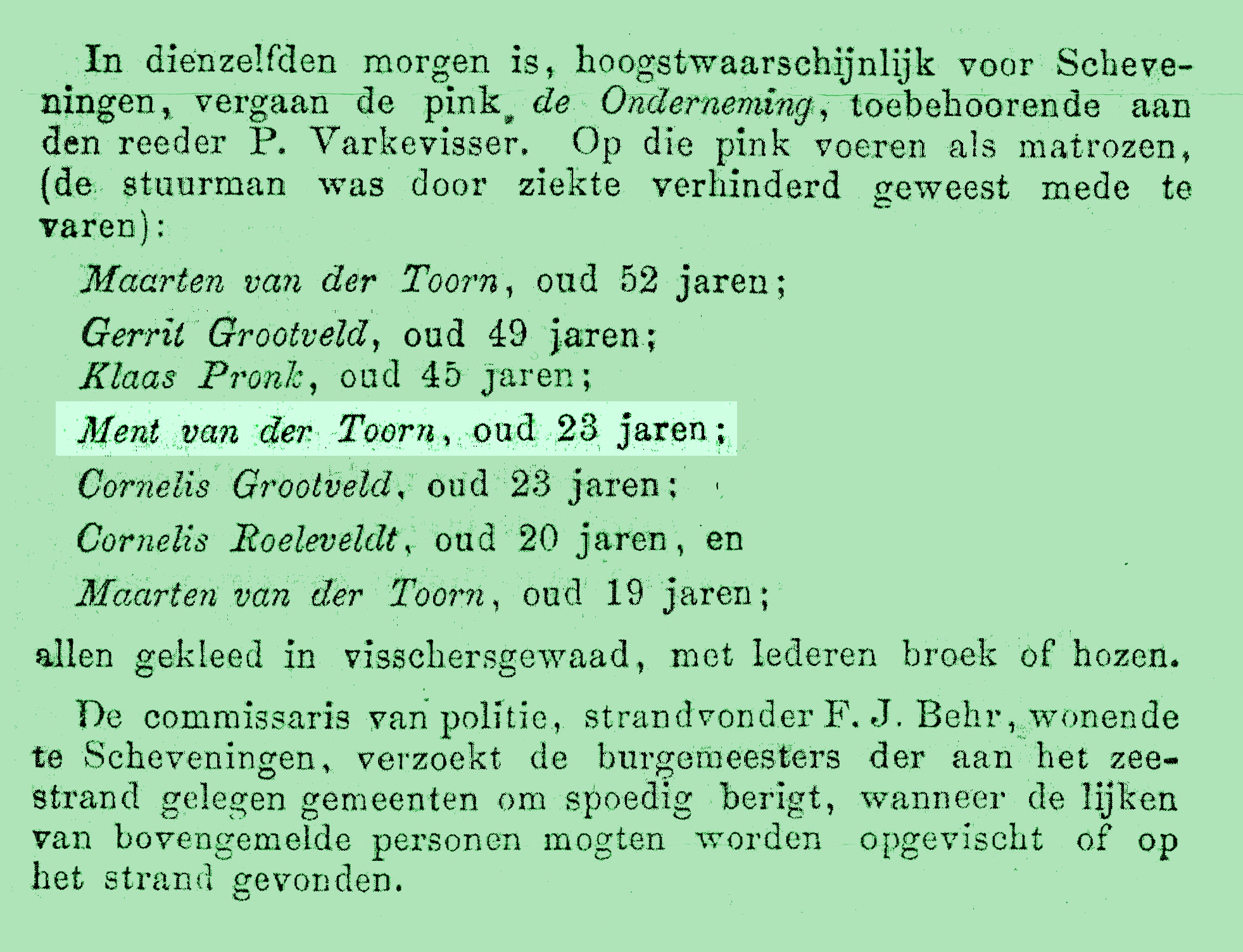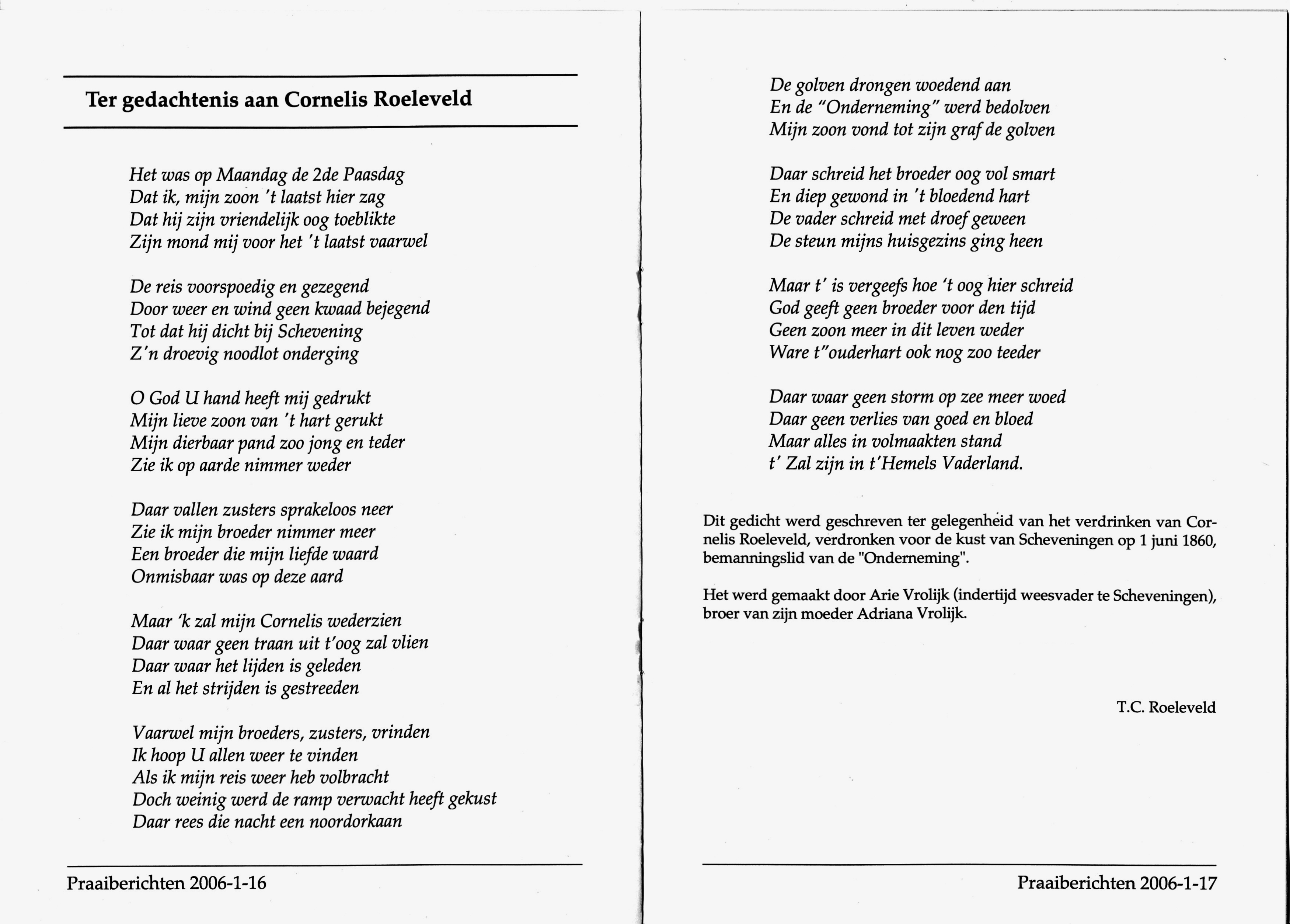 * Klaar Pronk: zijn broer Dirk- verdronk op 28/29 mei 1860 op de pink 'Vrouw Engeltje'.