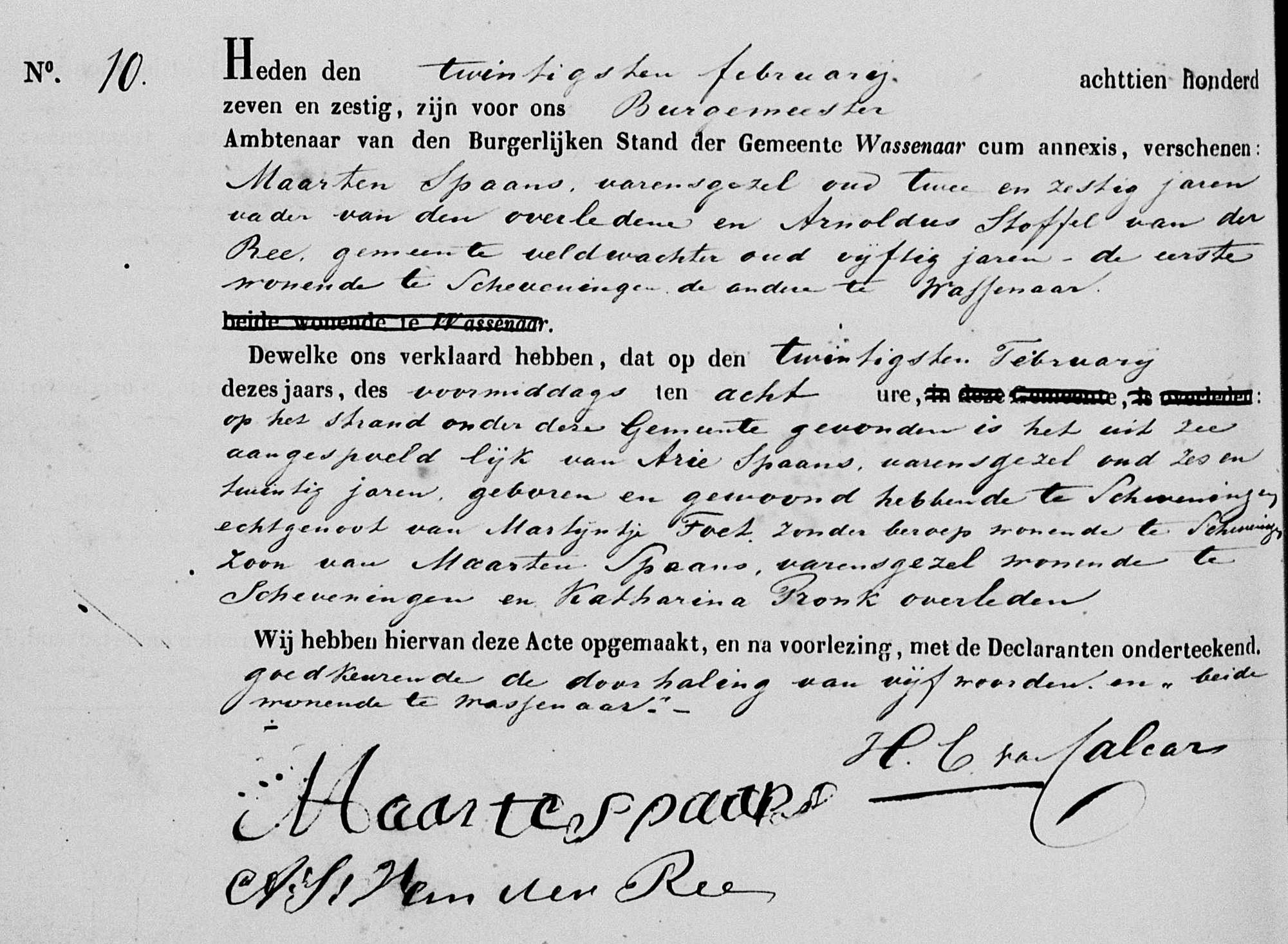 Een merkwaardig geval van verdrinking vond plaats op de onbekend gebleven pink van reder M. Bruin. De pink was nog maar net vanaf het Scheveningse strand in zee gestoken of de enigszins beschonken matroos Arie Spaans kreeg hoogstaande ruzie met het schipvolk van een dicht nabij gelegen schuit. Kennelijk hield de ruzie enige tijd aan want de intussen opgewonden Spaans sprong - wellicht om iemand op de andere schuit te grijpen - overboord. Het geschil kon niet worden beslecht want Spaans verdronk na zijn kwaadwillige duik. Stuurman B. Bruin besloot daarop om de schuit tussen Katwijk en Scheveningen weer op het strand te zetten om bij de reder en betrokkenen het droevige voorval te gaan melden. Een dag erna spoelde het lichaam van Arie Spaans, die een vrouw en drie jongen kinderen achterliet, op het strand bij Wassenaar aan.