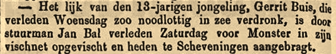 Tijdens het ankerzetten raakte de visser Gijsbert Groen in de stroom en verdronk. Het lichaam spoelde op 2 september bij Katwijk op het strand.* Zijn … lees meer