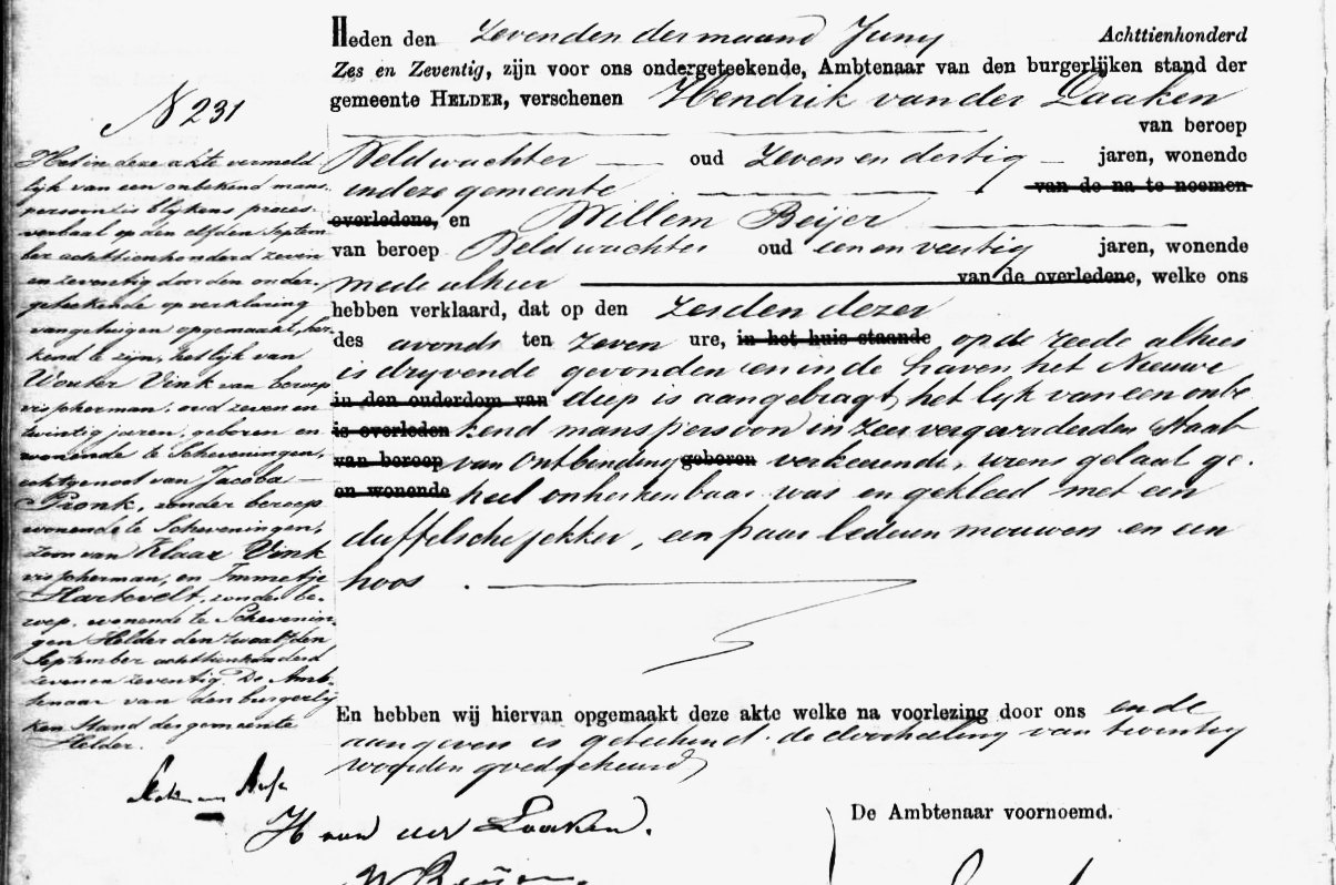 * Wouter Vink: werd op 6 juni voor Nieuwe Diep drijvende gevonden.