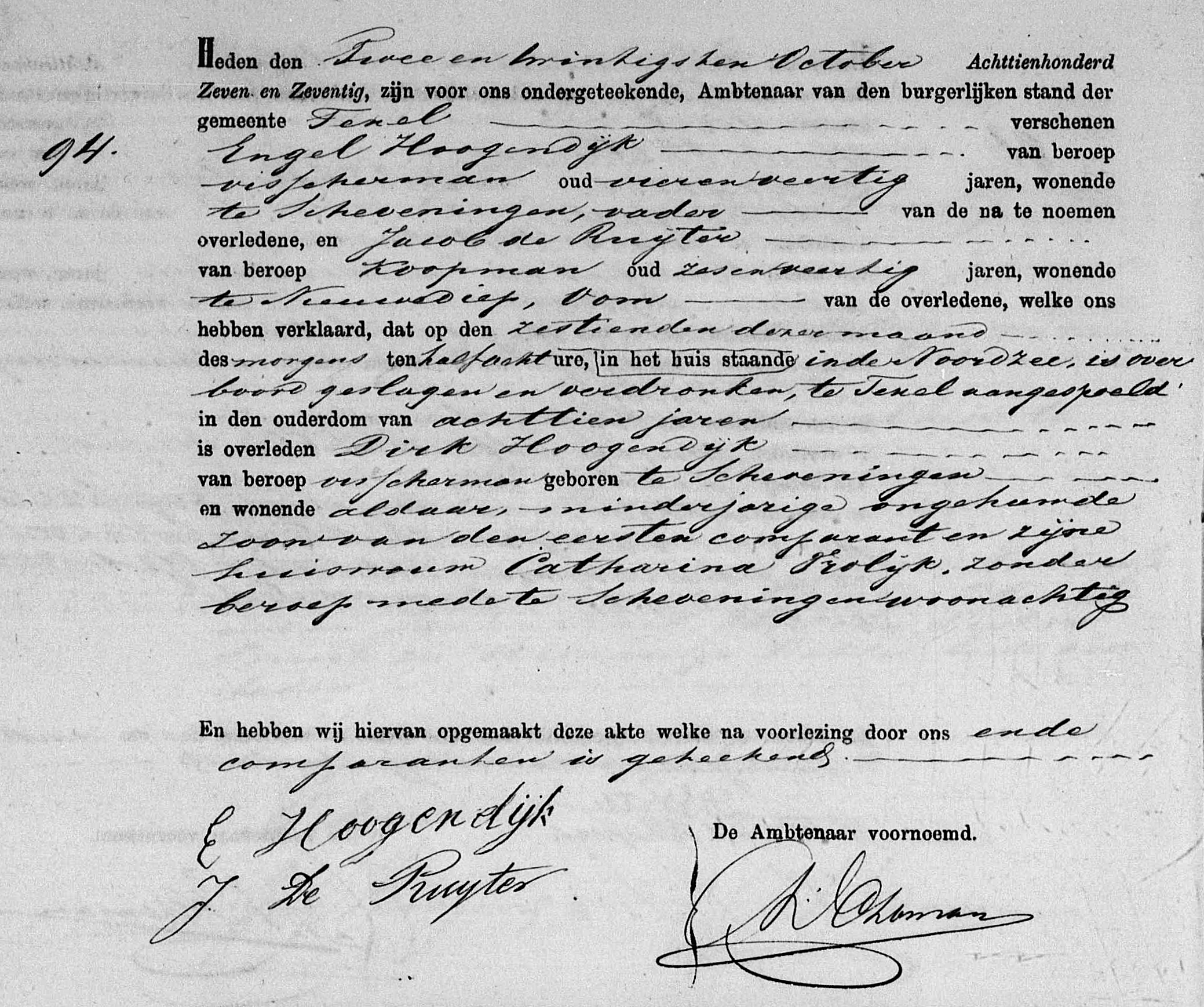 * Dirk Hoogendijk spoelde eind oktober op het strand bij Texel aan.