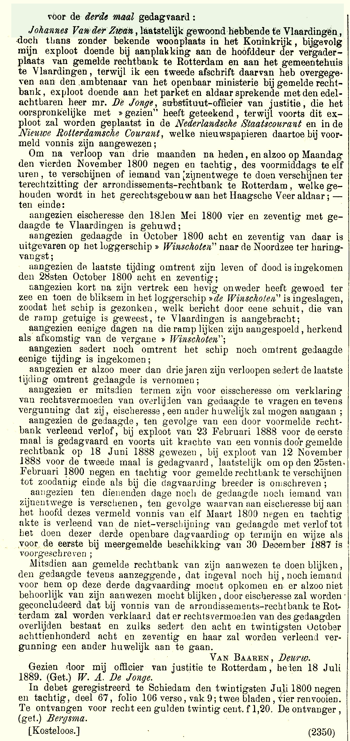 * Johannes van der Zwan: was in 1851 te Scheveningen geboren maar was in mei 1870 met zijn ouders naar Vlaardingen verhuisd.