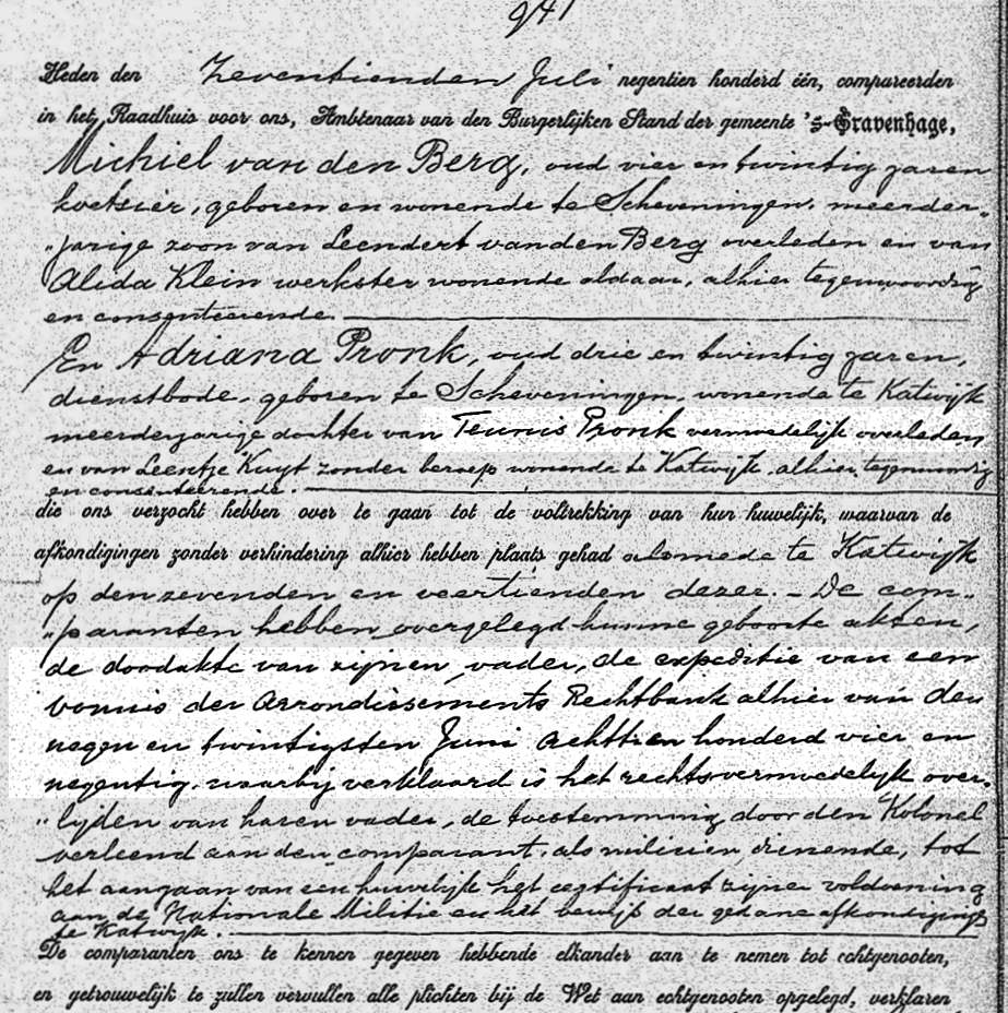 Op de Katwijker bomschuit -die met man en muis verging- bevond zich één geboren Scheveninger. Teunis Pronk was met zijn gezin in augustus 1881 in Katwijk a/zee gaan wonen.