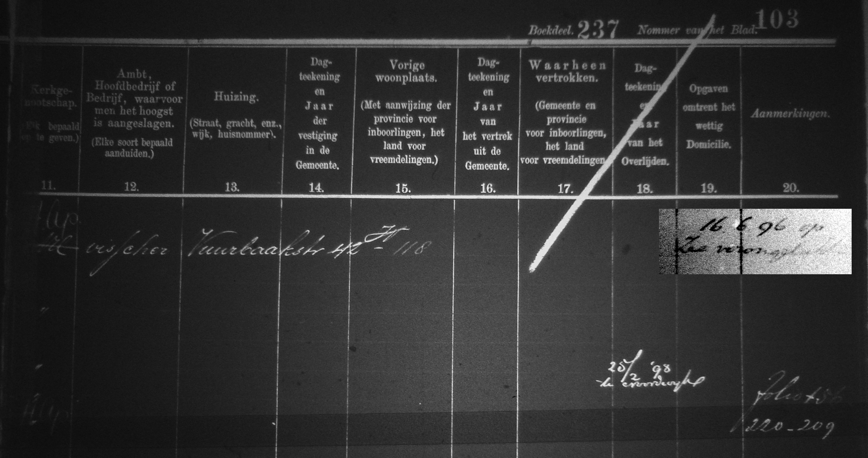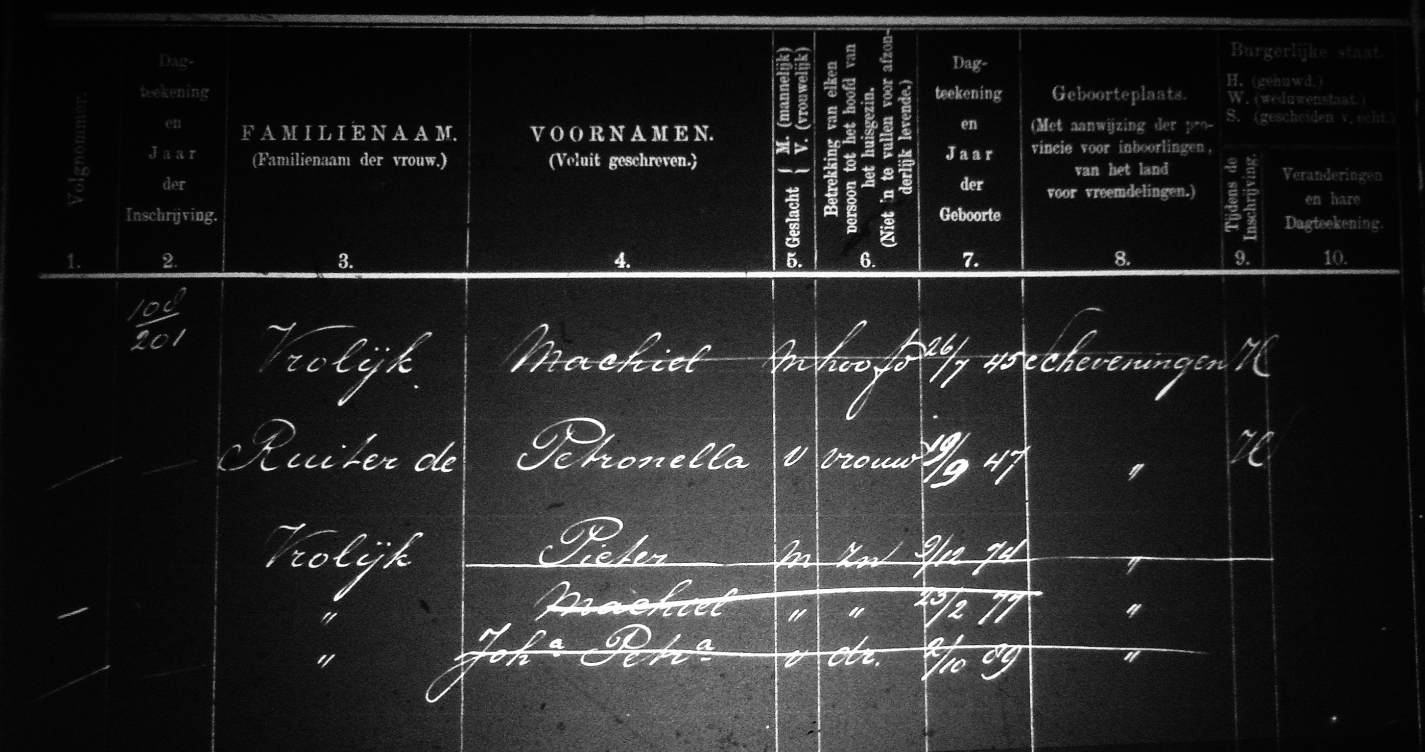 Op 13 juni vertrok de zeillogger vanuit Vlaardingen ter haringvisserij. Rond 22 juni kreeg reder A. Hoogenraad een bericht uit het Schotse Lerwick van zijn schipper Cornelis Plugge. Deze berichtte dat één van zijn mensen - de stuurman Machiel Vrolijk- op 16 juni, overboord was gevallen en verdronken. Zijn zoon Pieter verdronk in 1898 op de SCH 173 'Johanna Cornelia.'