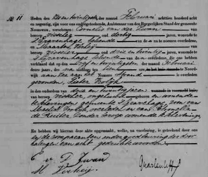 Pieter Vrolijk: op 25 februari spoelde zijn lichaam op het strand van Noordwijk aan en werd vervolgens in die plaats begraven. Zijn vader Machiel Vrolijk verdronk in juni 1896 op de SCH 332 'Johanna Cornelia'.