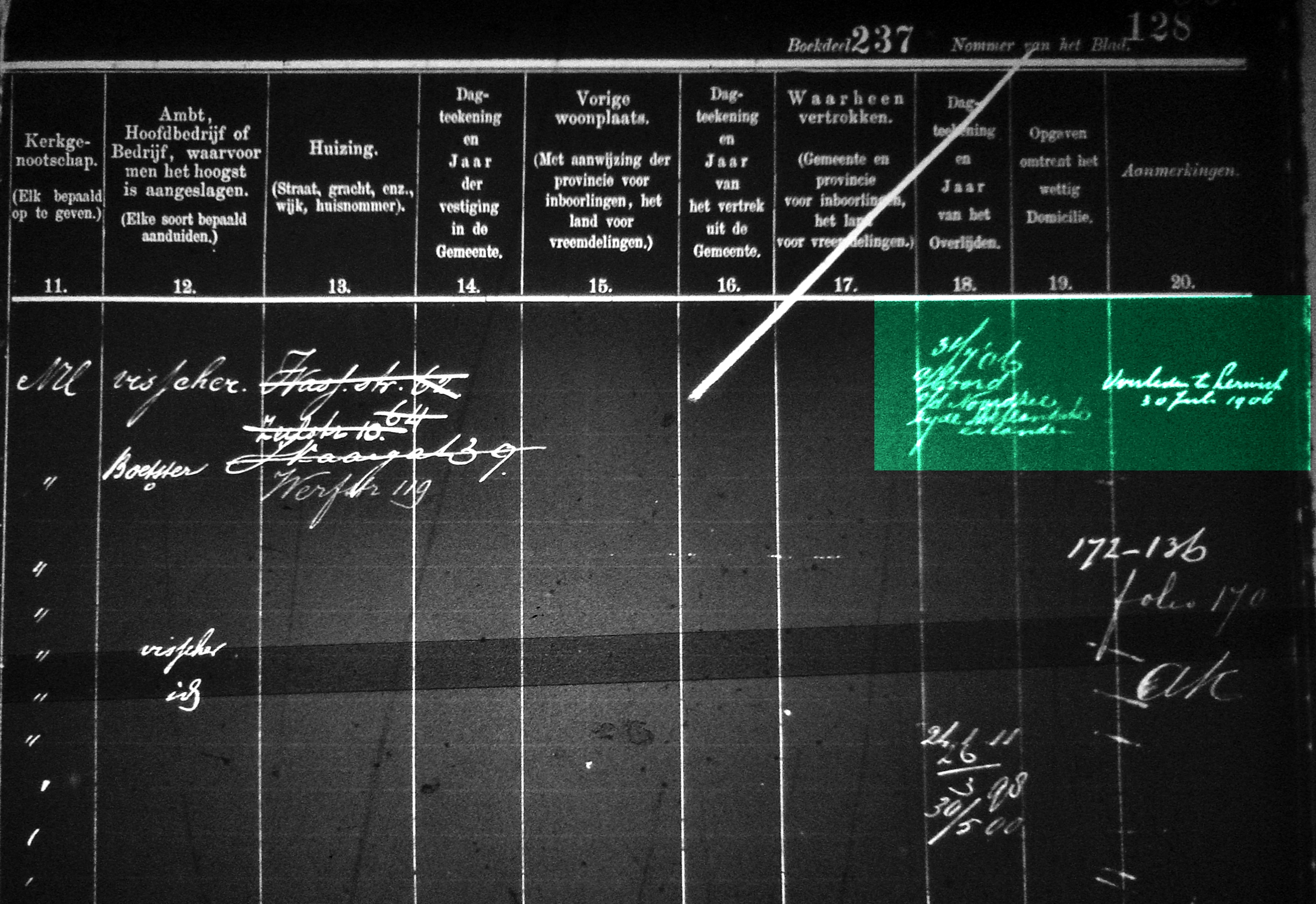 Op 1 augustus liep de ijzeren zeillogger de haven van het Schotse Lerwick binnen. Aan boord was een dag eerder en na een ziekte van drie dagen matroos Machiel Vrolijk overleden. Nog dezelfde dag werd Vrolijk op de plaatselijke begraafplaats ter aarde besteld. De gehele bemanning, waaronder de eigen zoon, waren bij de plechtigheid aanwezig.