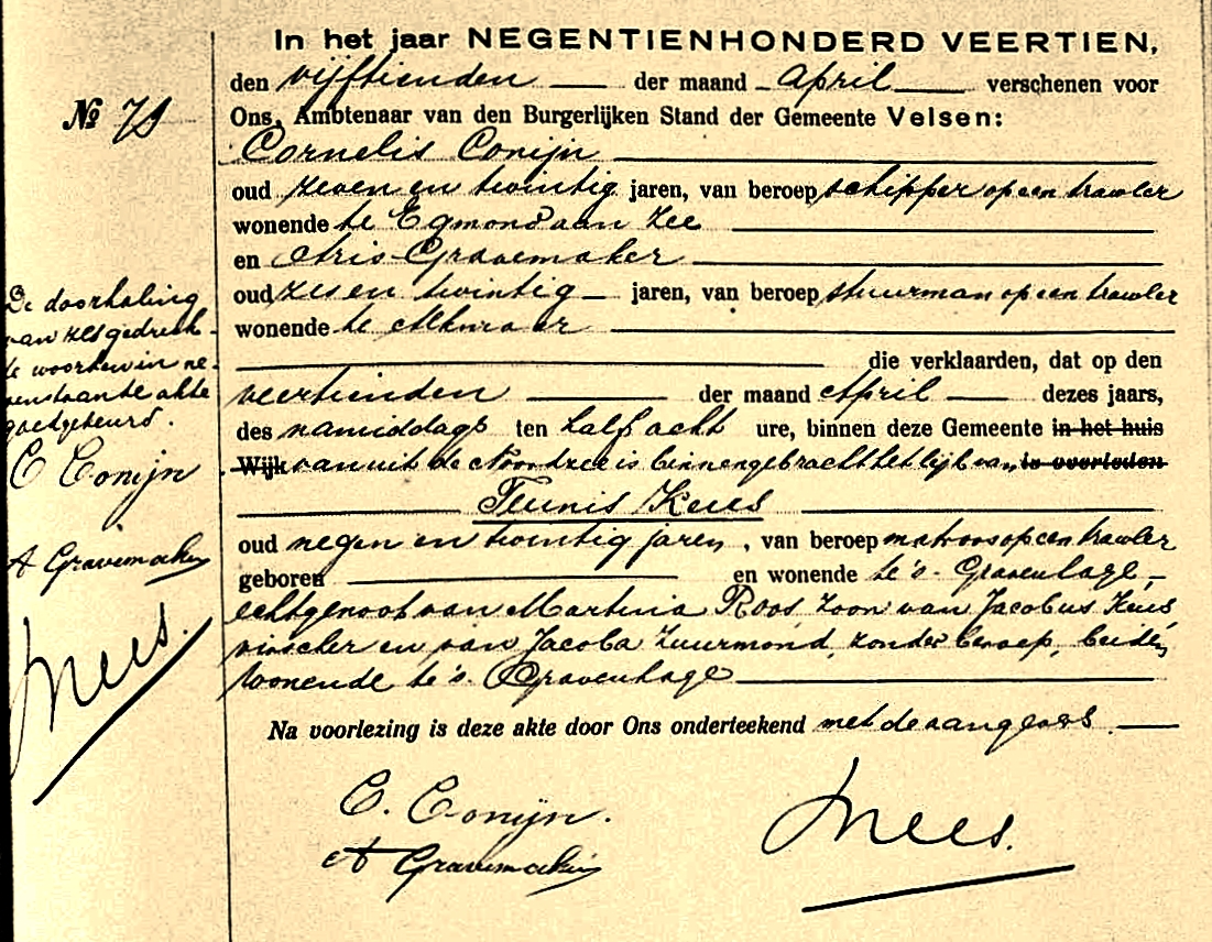 Teunis Keus viel tijdens het net uitzetten overboord en verdronk. Het lichaam kon - na te zijn opgevist- aan wal worden gebracht.