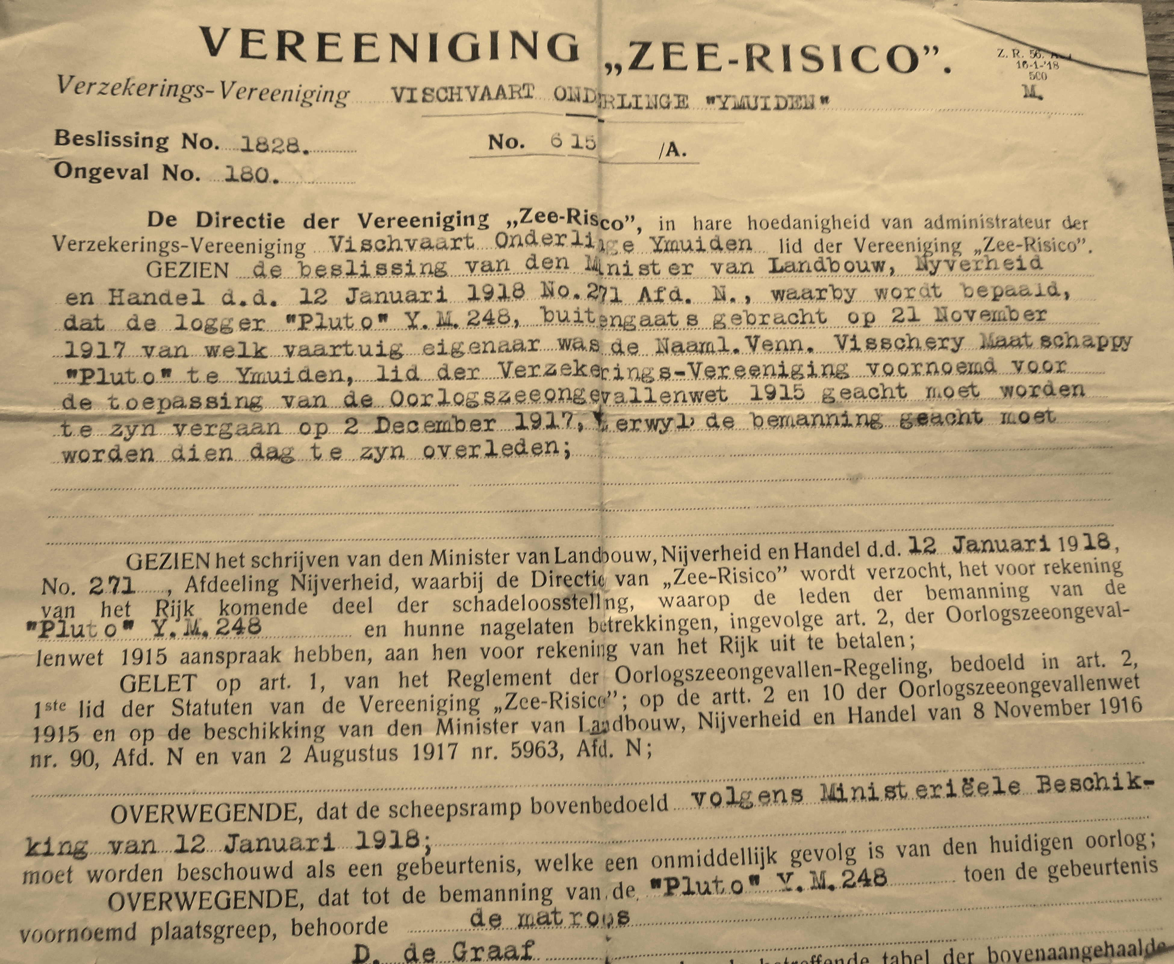 Willem Roeleveld: zijn stiefzoon Teunis Plugge kwam om op een onbekend schip in februari 1918.
