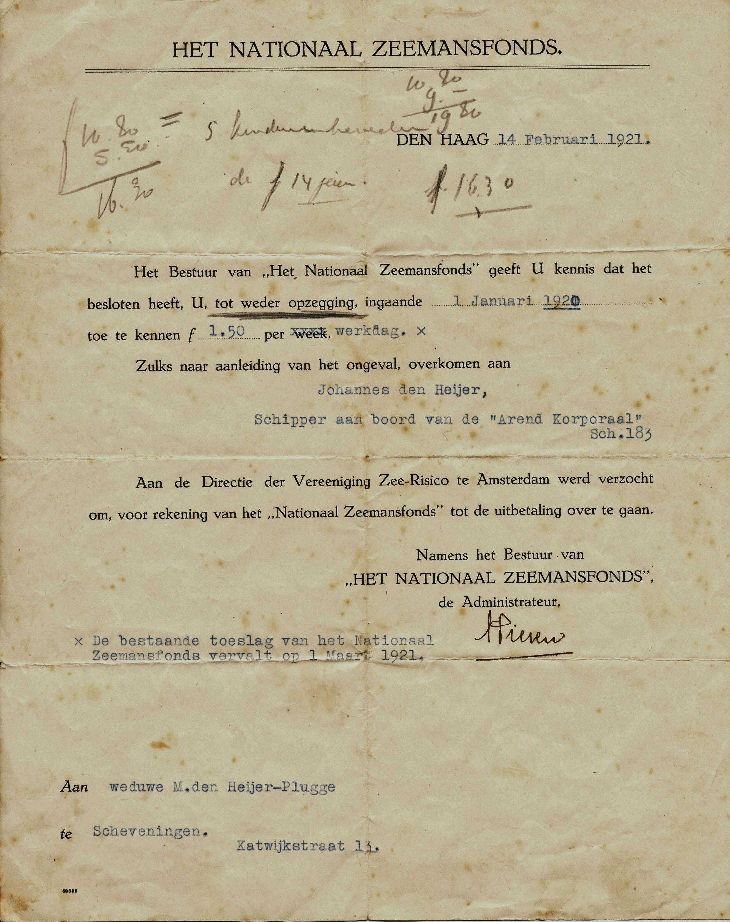 Evert de Niet: zijn broer -Jacob- kwam in januari 1918 om op de SCH 29 'Maria Catharina'.