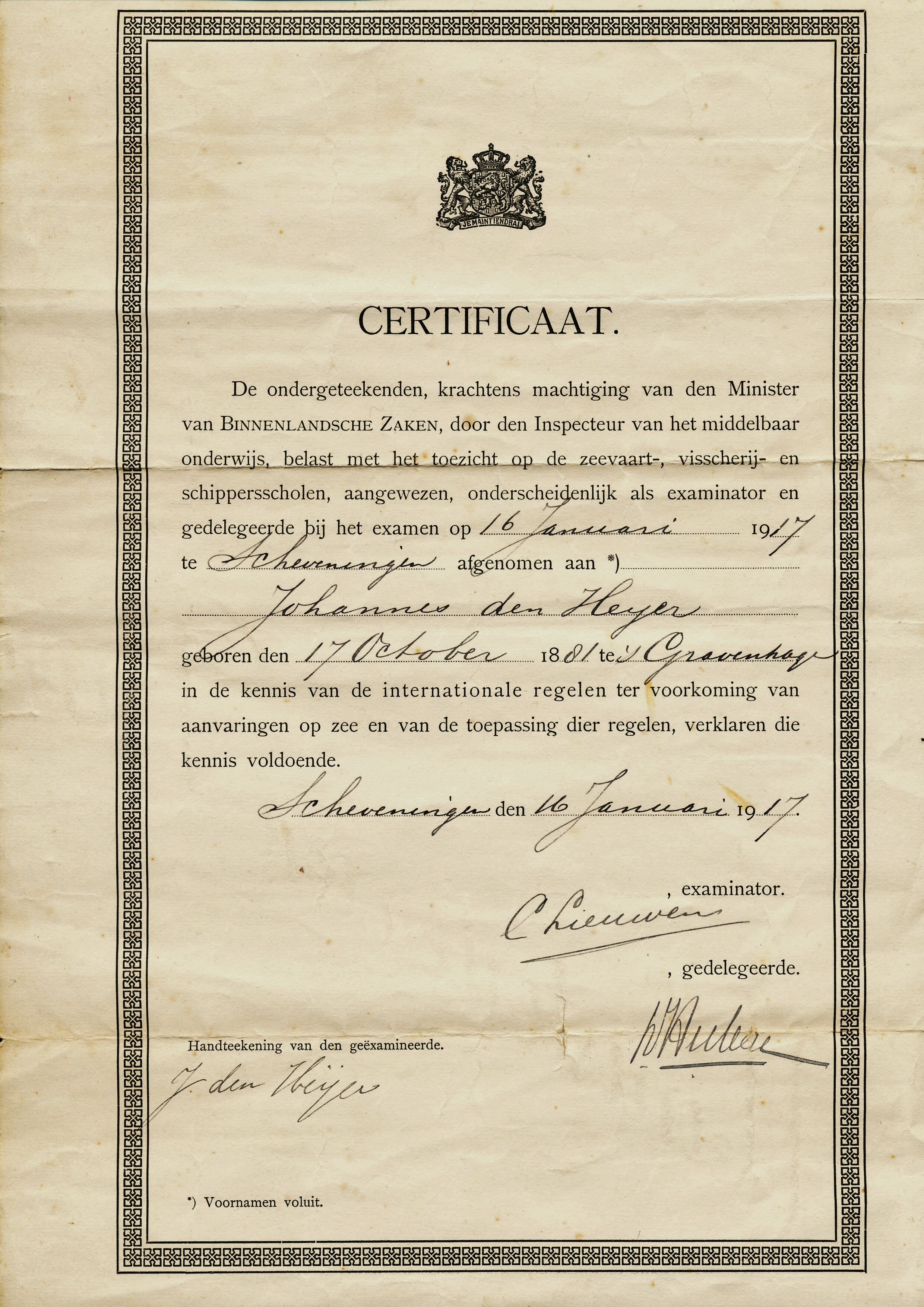 Pieter- en Gerrit den Heijer zijn vader en zoon. Een andere zoon -Willem- kwam om in september 1918 op de IJM 271 'Jean Paul'.