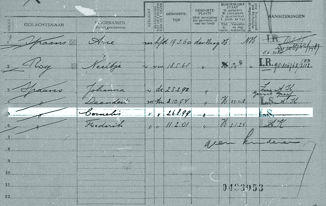 Op de kaart van het bevolkingsregister van Albertus van Rhijn wordt ten onrechte het jaar 1920 vermeld.Verder kwamen om:Van IJmuiden:R. de Wijn, 1e ma … lees meer