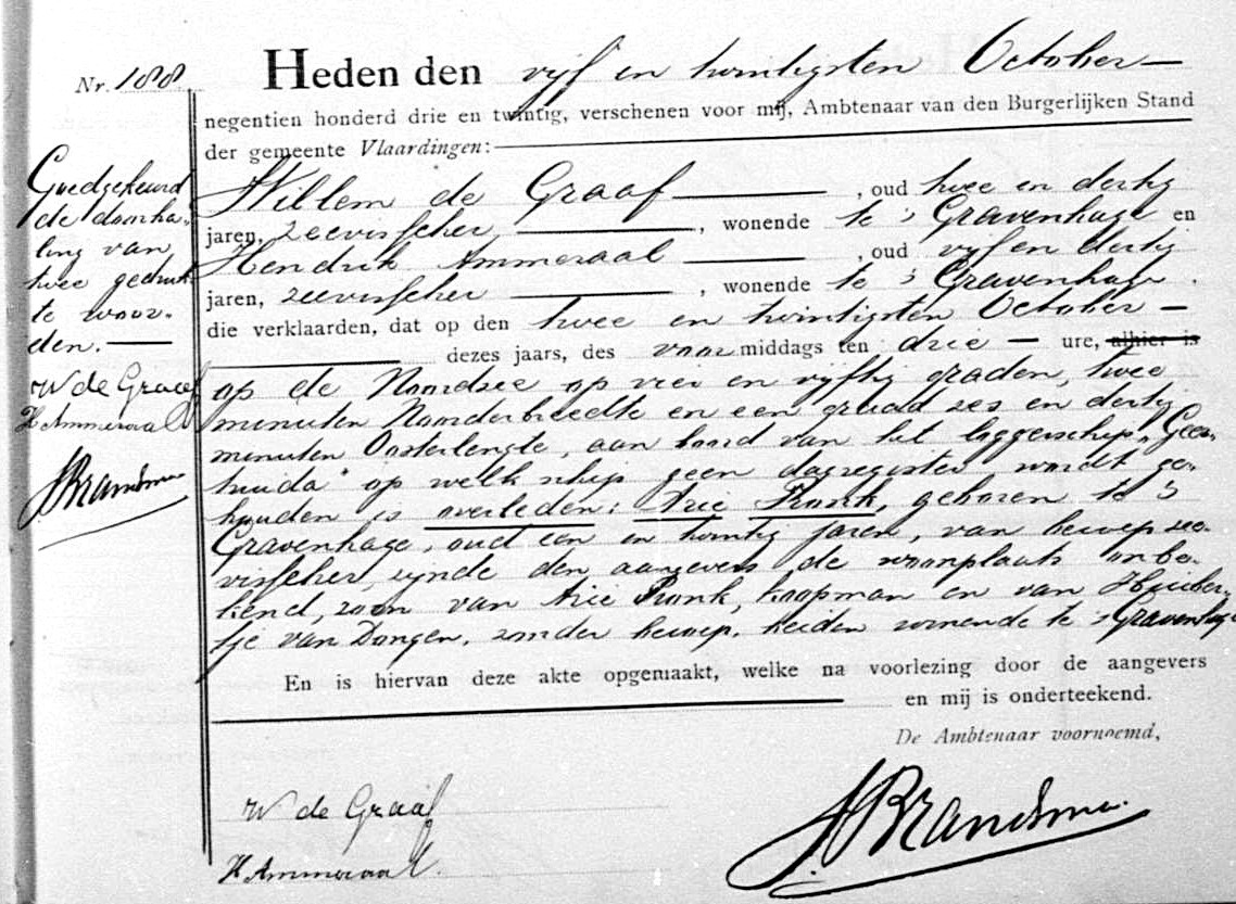 * Arie Bal: zijn broer Gijsbert- en hun vader Albert- kwamen in novenber 1927 om op de SCH 276 'Zeearend'.