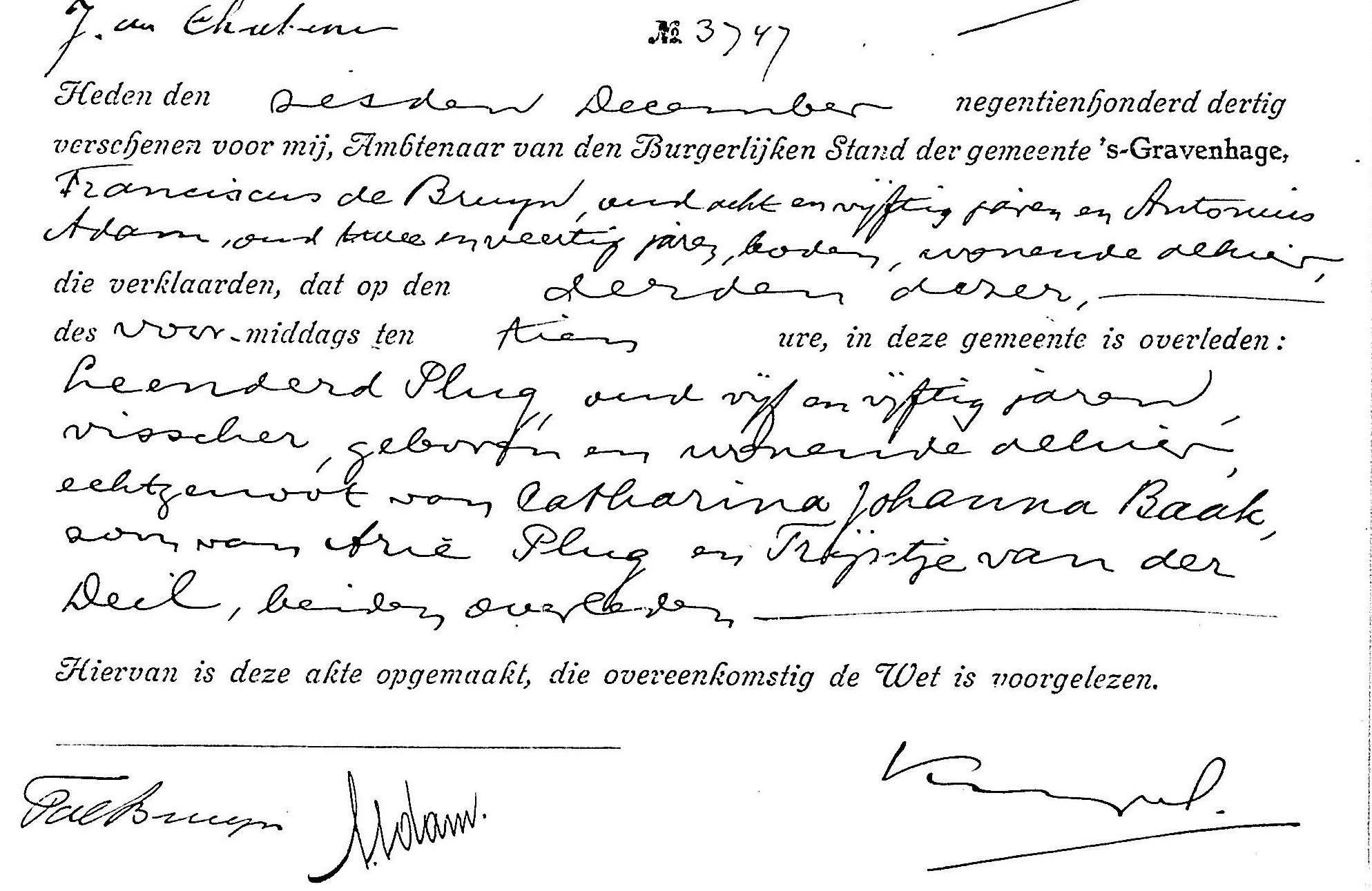 Op 3 december werd het dode lichaam matroos Leenderd Plug te Scheveningen aangebracht. Pas nadat de quarantaine-dokter het lichaam had geschouwd mocht het lichaam worden vervoerd.