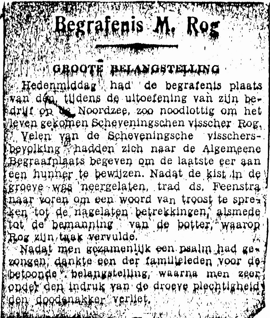 De aan boord overleden Willem Verheij had zich met het haringkaken in de vinger gesneden. Hij kreeg daarna bloedvergiftiging waarvoor hij door de arts … lees meer