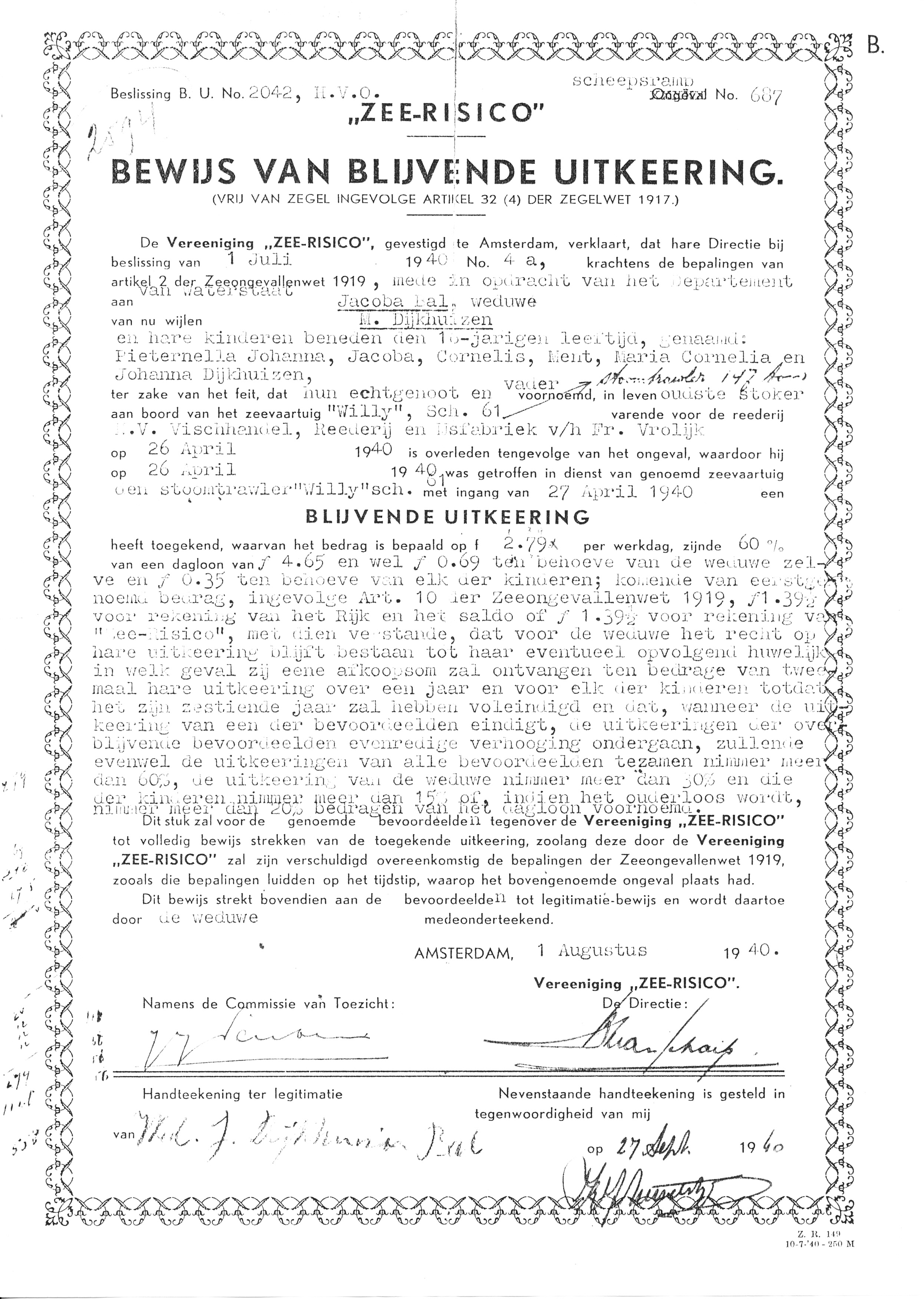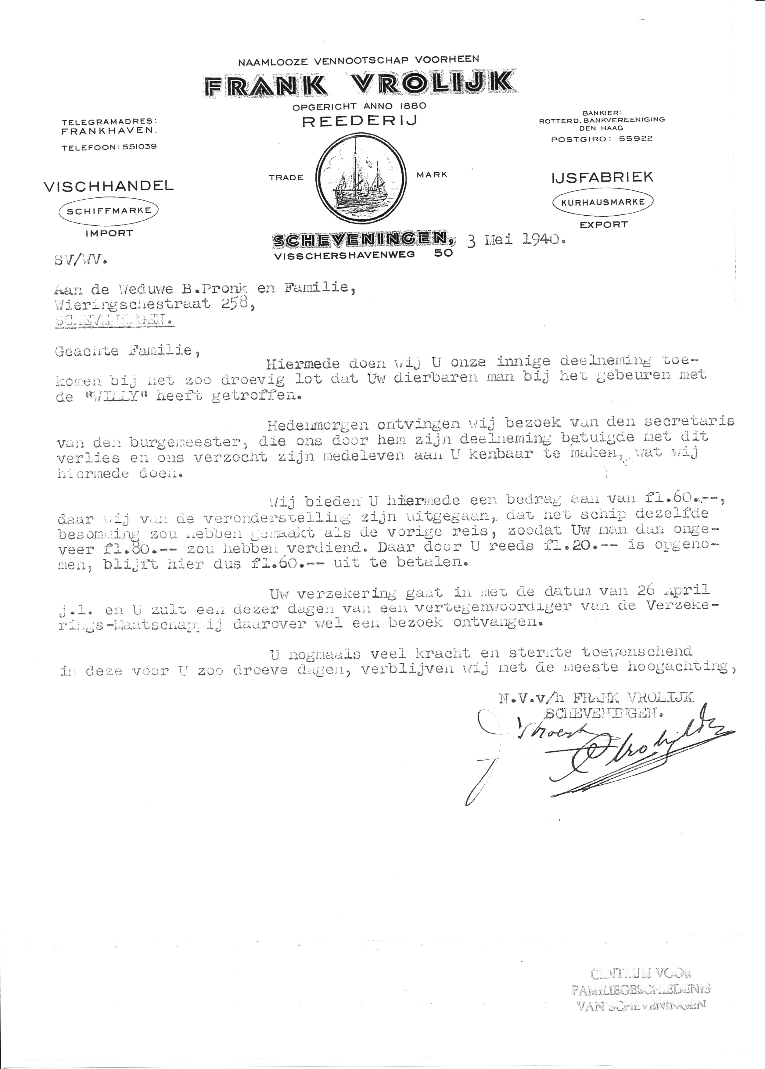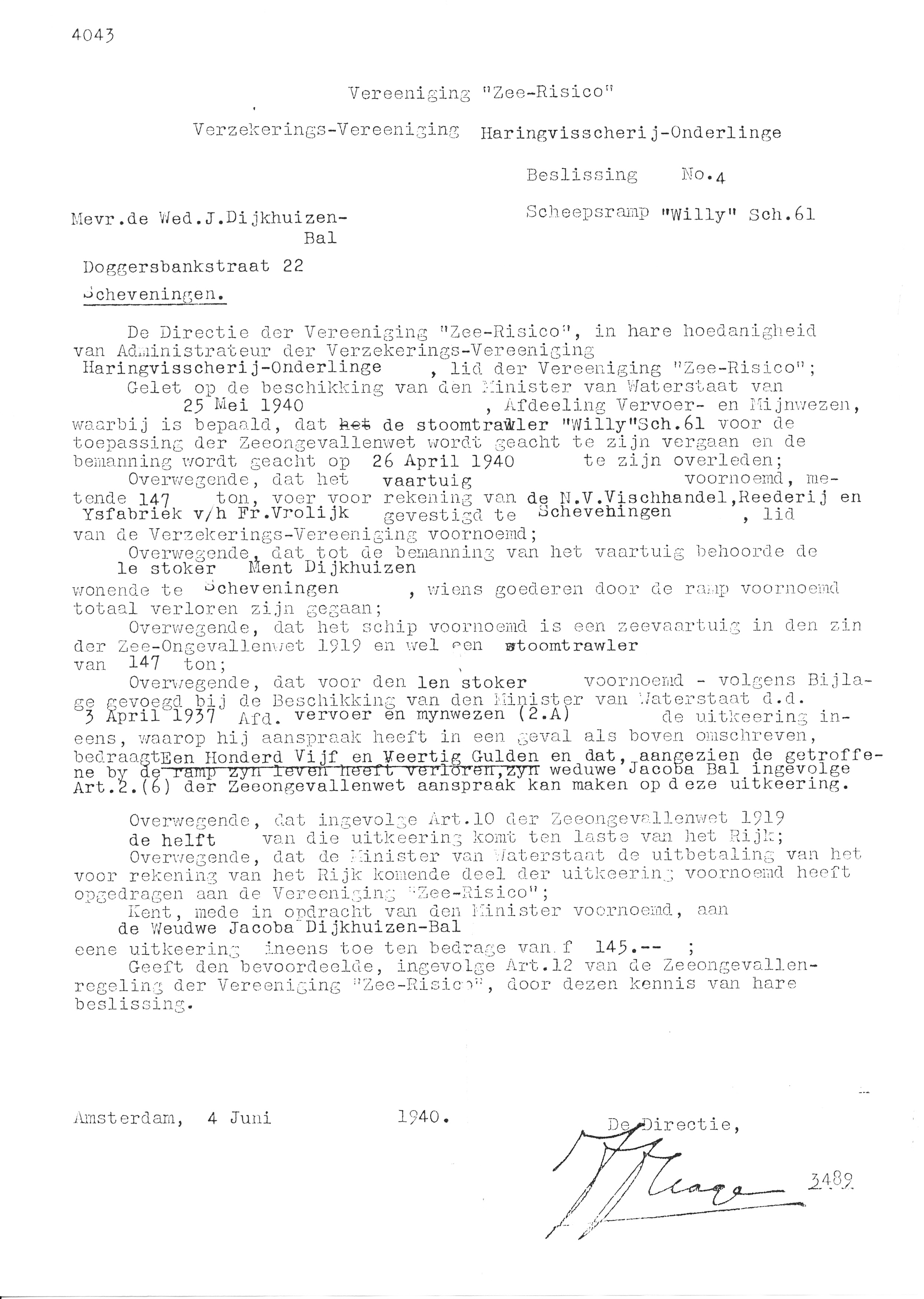 Door mijnexplosie vergaan. (1940)