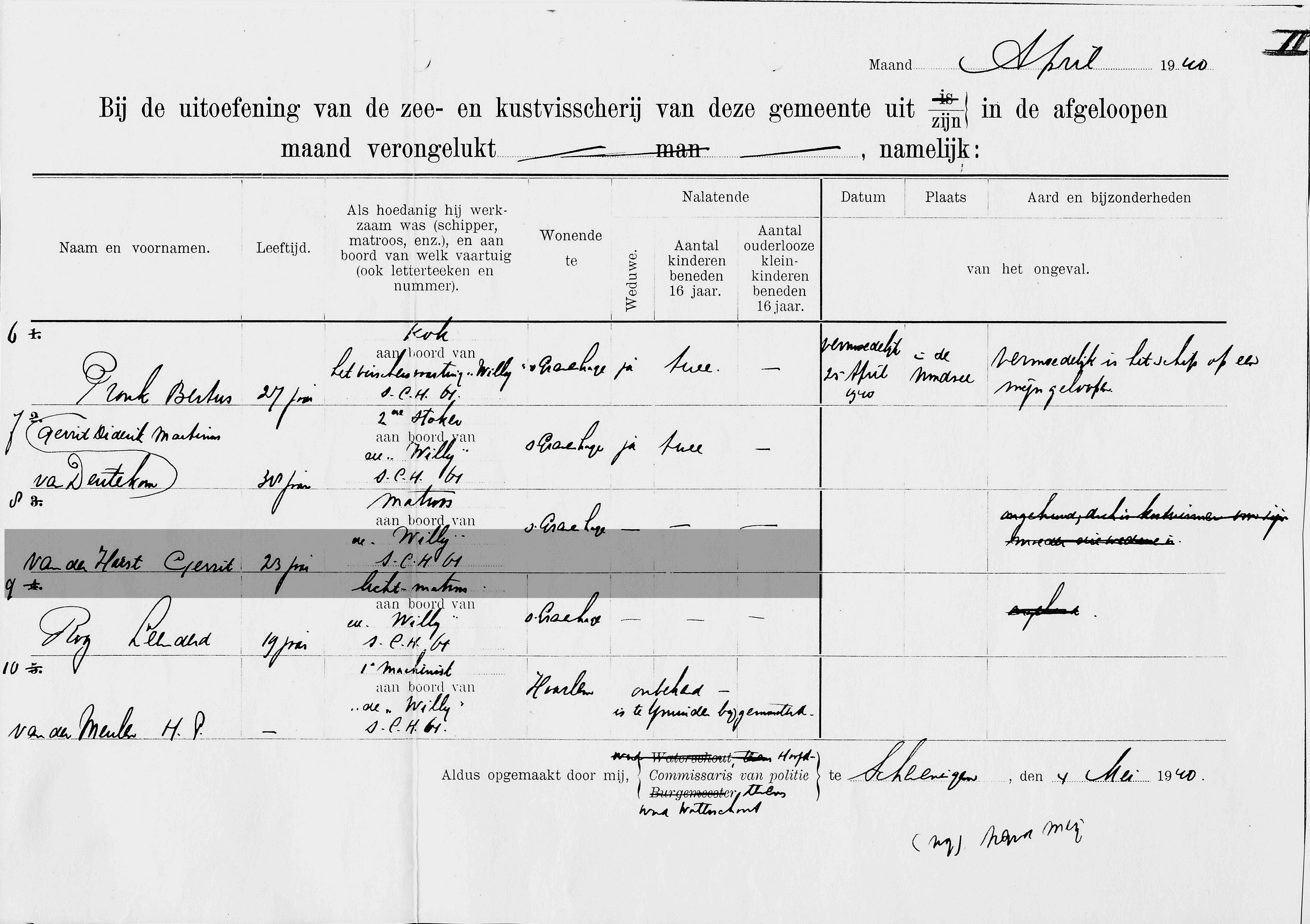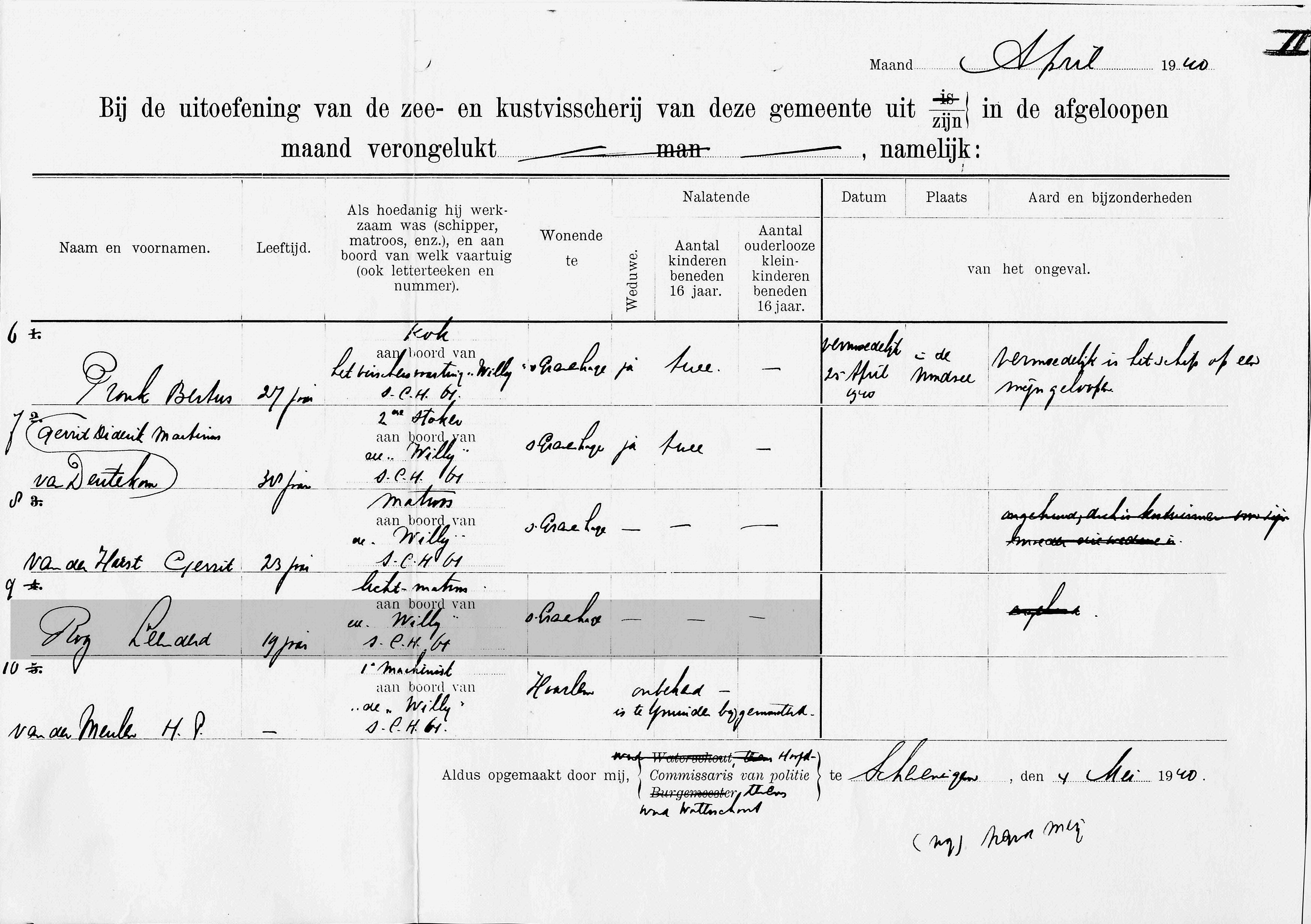 H.P. v.d. Meulen, machinist