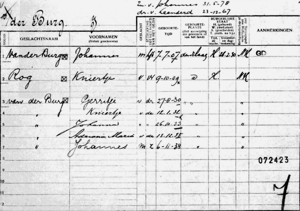 * Johannes van der Burg: zijn broer Teunis- kwam om in oktober 1945 op de SCH 161 'Arie van der Zwan'.