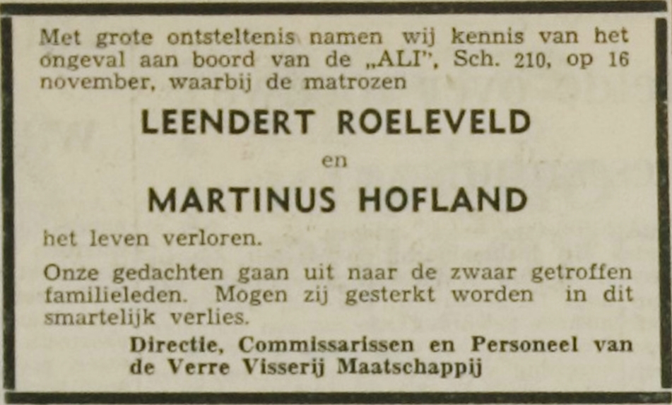 Op 14 oktober liep de bomschuit Emma de haven van Vlaardingen binnen om het verlies van een bemanningslid te melden. Cornelis Spaans was - toen de bo … lees meer