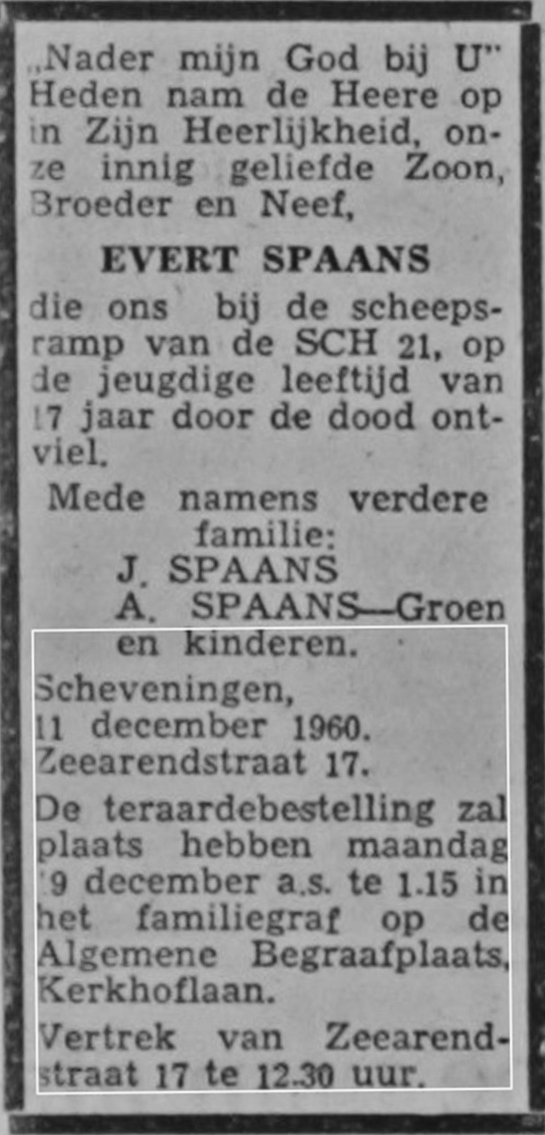 De logger liep op het zuiderhavenhoofd van Scheveningen waarbij door overkomend water Evert Jacobus Ment Spaans overboord sloeg en verdronk.