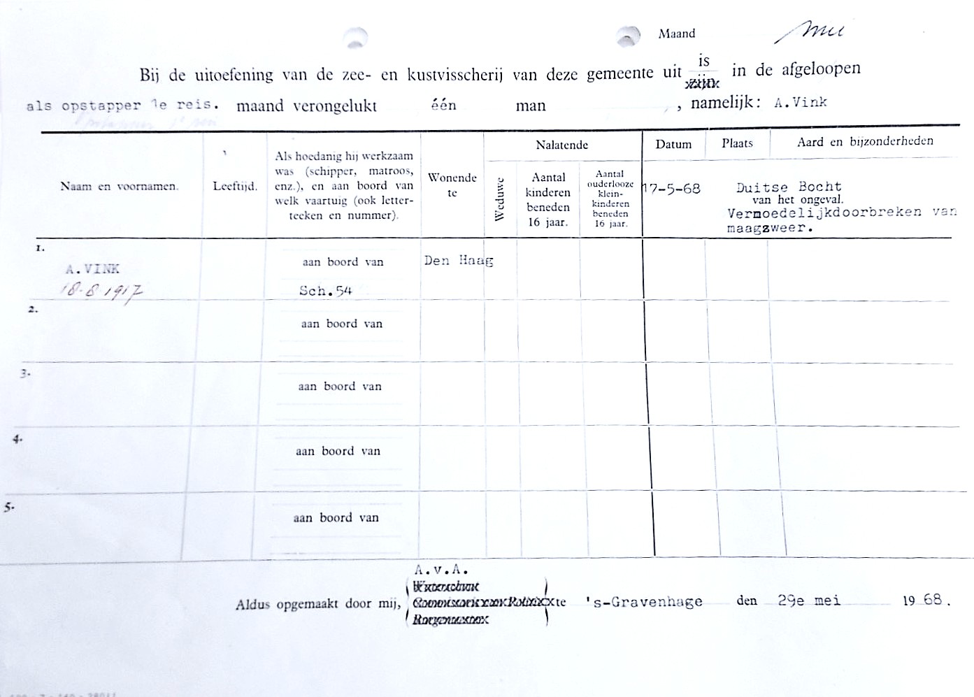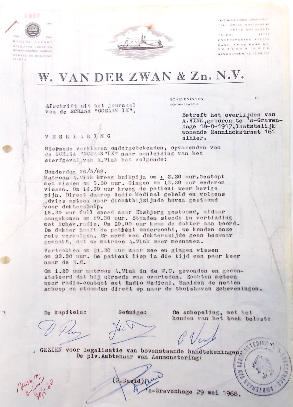 Aan boord overleed Albertus Vink.
